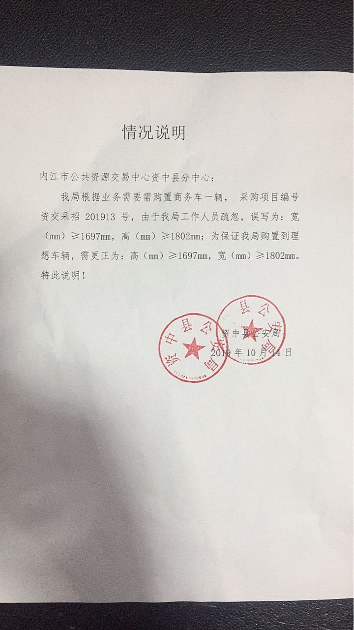 资中县公安局执法执勤车辆购置变更公告