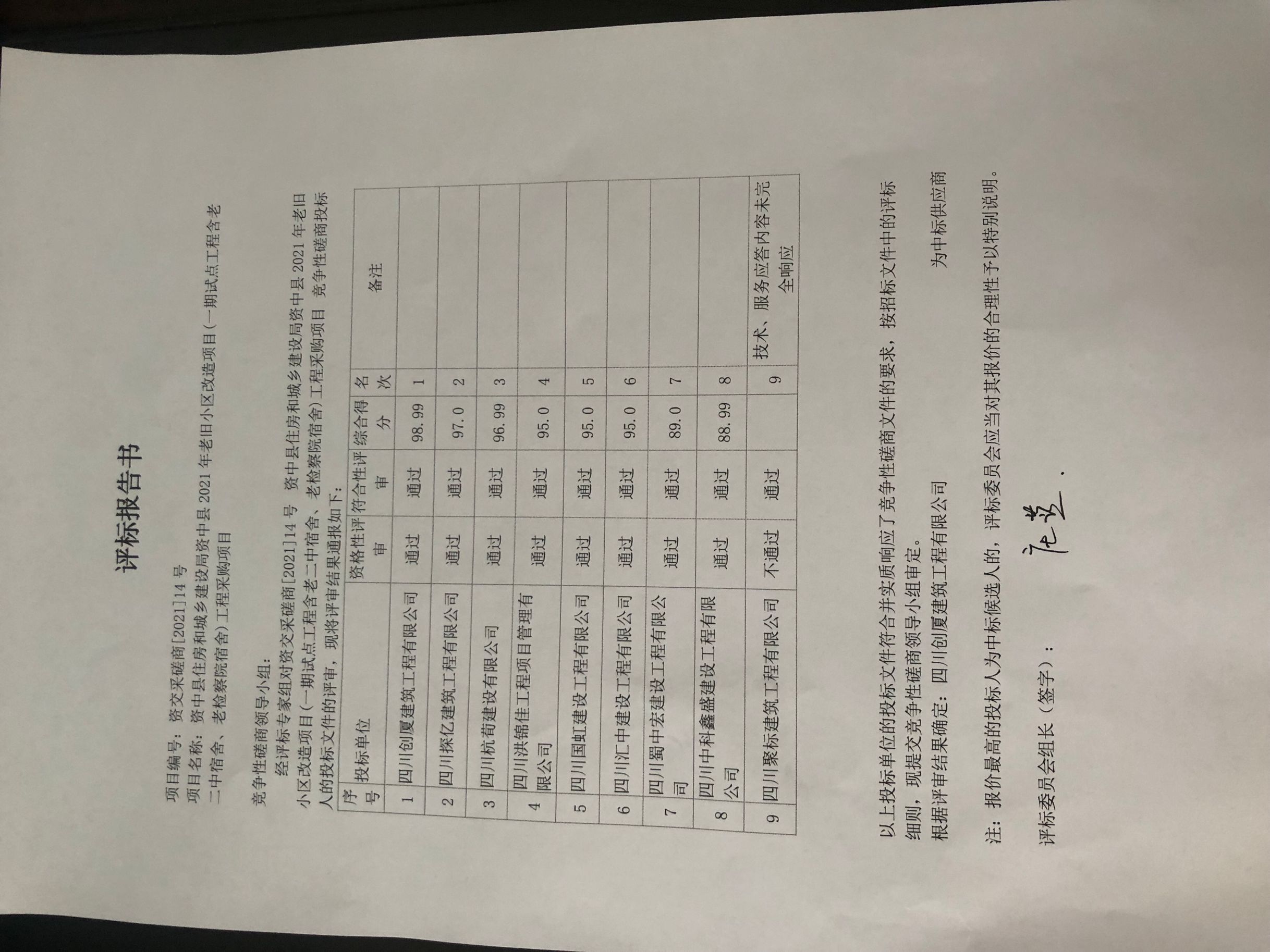 资中县2021年老旧小区改造项目(一期试点工程含老二中宿舍、老检察院宿舍)结果公示