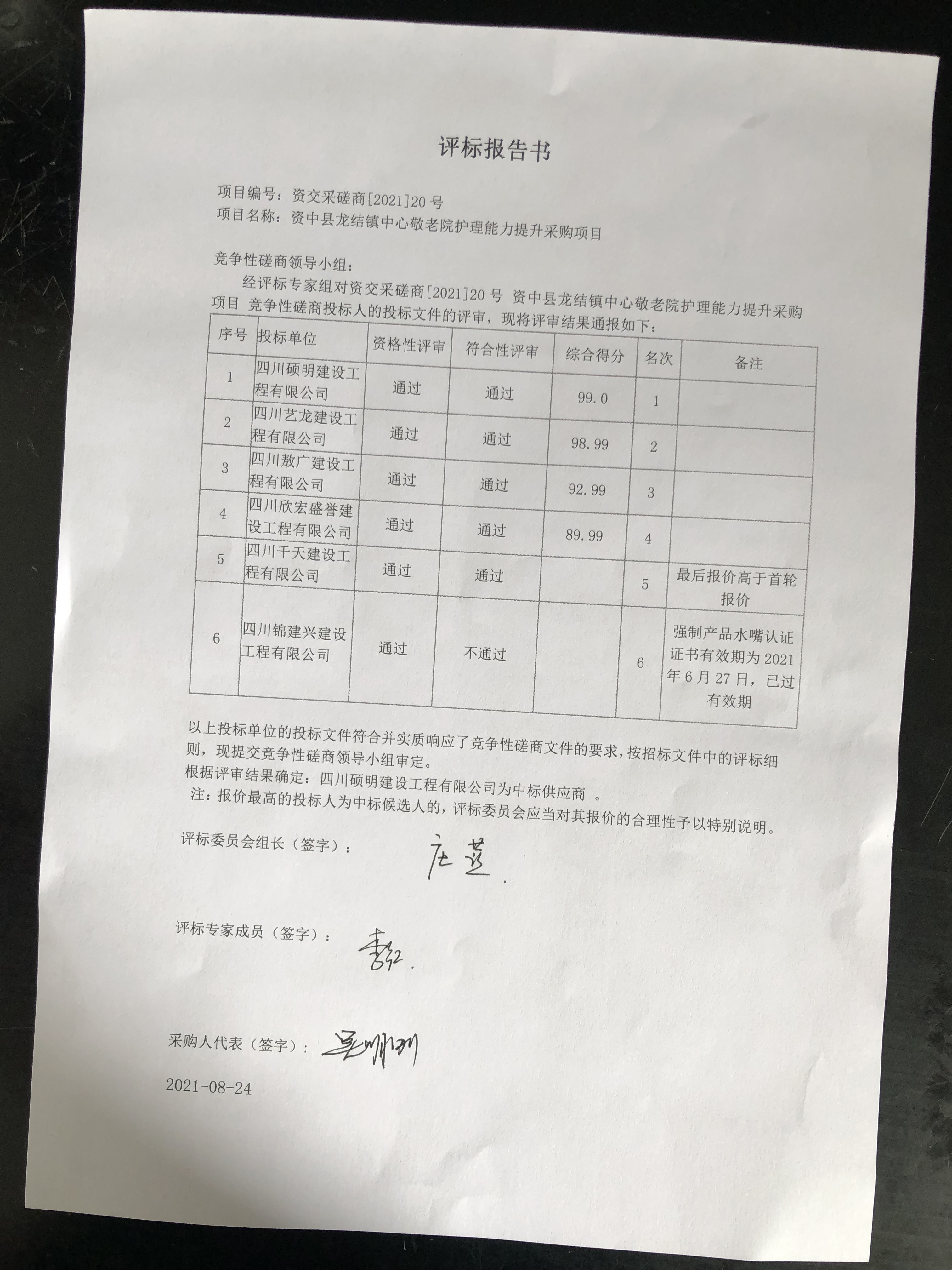 资中县龙结镇中心敬老院护理能力提升项目结果公示