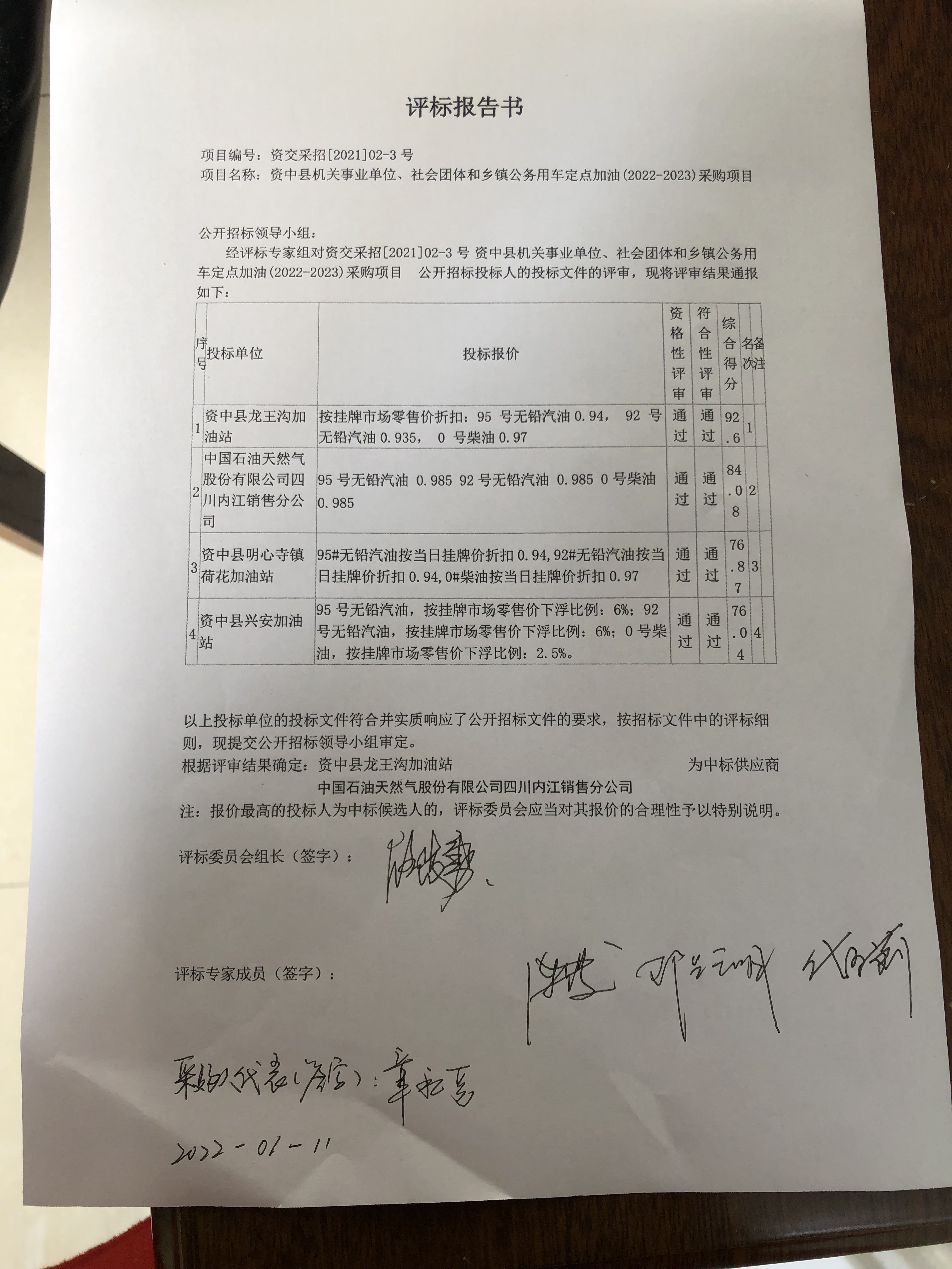资中县机关事业单位、社会团体和乡镇公务用车定点加油(2022-2023)采购项目结果公示