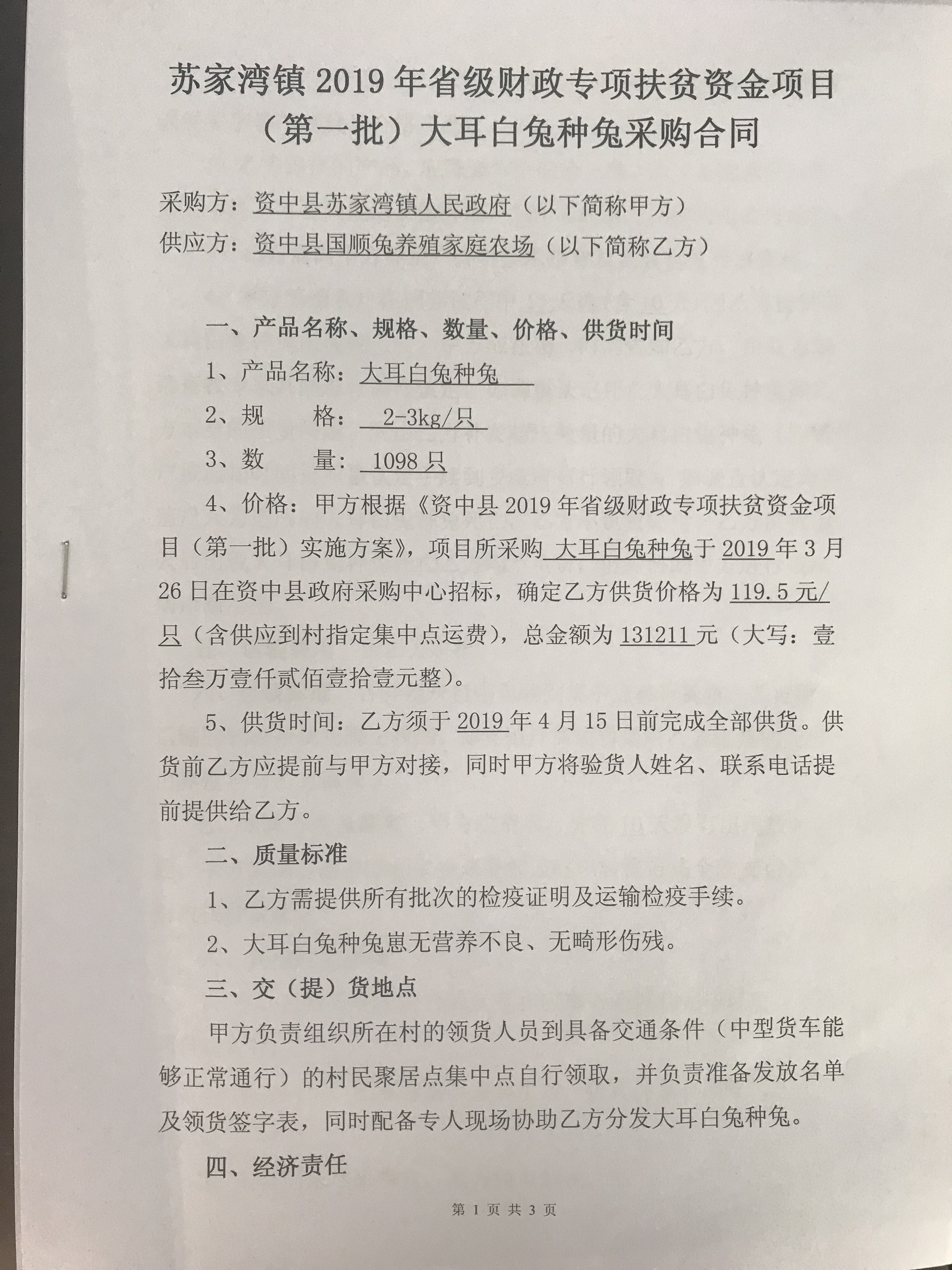 [合同备案]苏家湾镇2019年省级财政专项扶贫资金项目(第一批)大耳白兔种兔