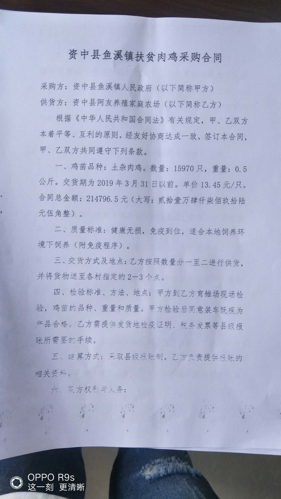 [合同备案]资中县鱼溪镇土杂鸡采购一批