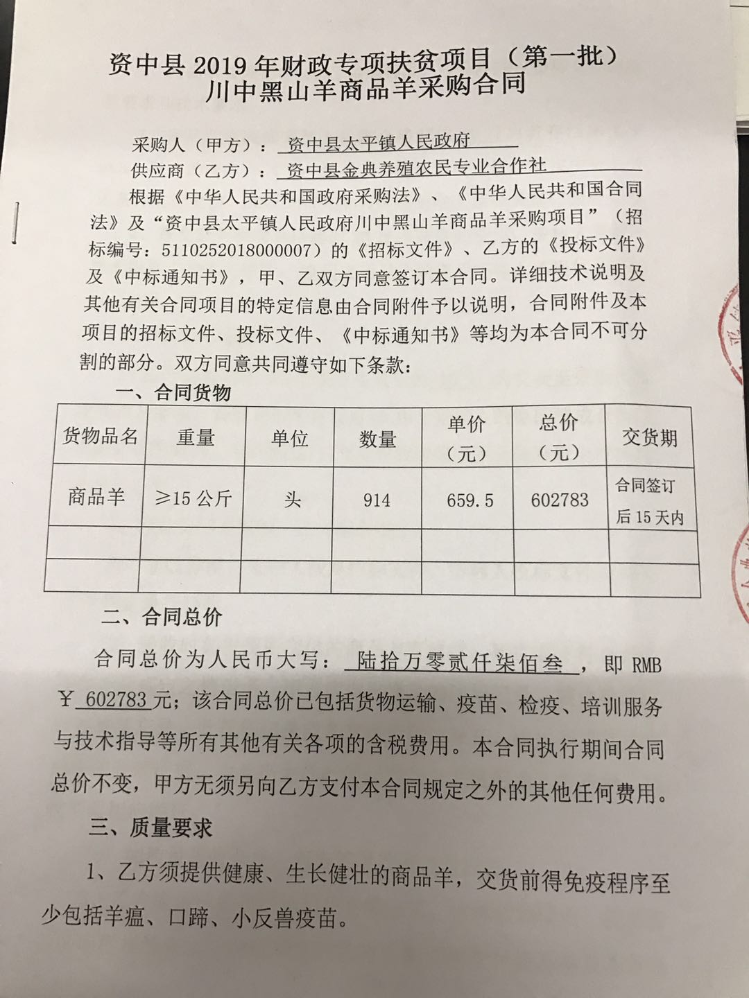 [合同备案]太平镇扶贫办购买第一批扶贫物资