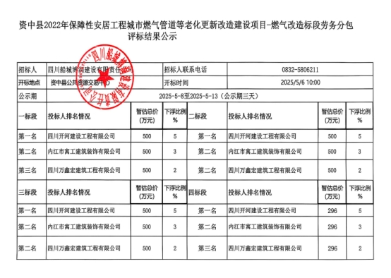 西干道三期二阶段机械租赁结果公示