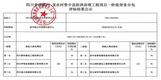 四川省球溪河-龙水河资中县防洪治理工程项目一阶段劳务分包评标结果公示