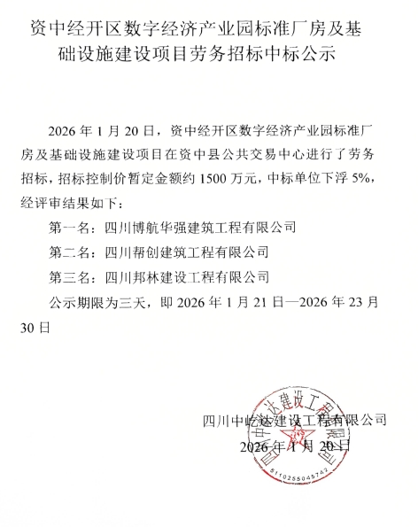 数字经济产业园标准厂房劳务中标公式