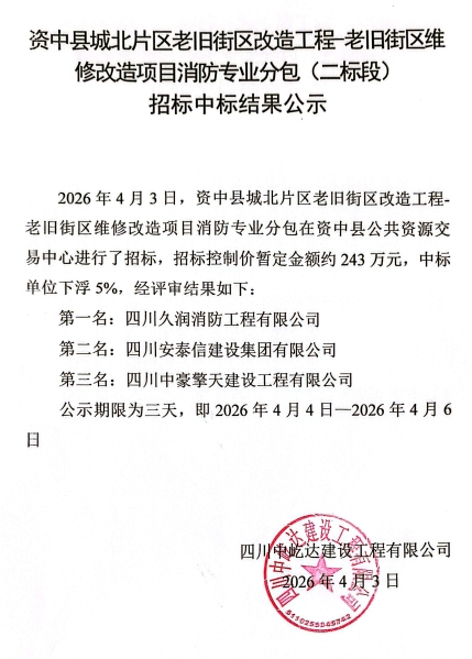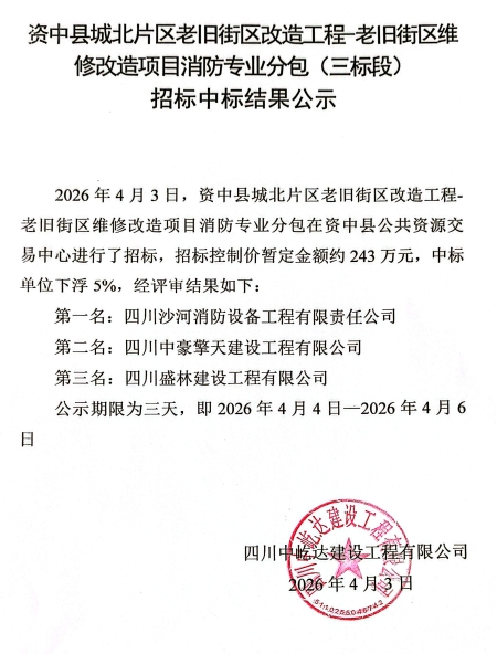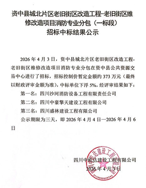 资中县苌弘教育培训基地建设项目(二阶段)劳务分包招标评标结果公示(1)