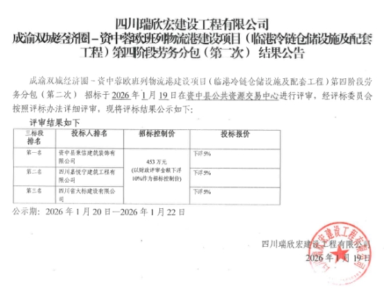 成渝双城经济圈-资中蓉欧班列物流港建设项目(临港冷链仓储设施及配套工程)第四阶段劳务分包(第二次) 结果公告