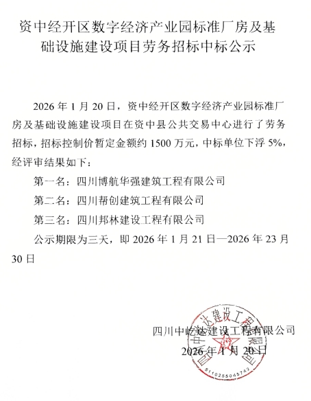 数字经济产业园标准厂房劳务中标公式